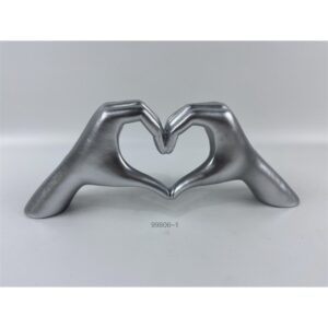 Mãos Coração em Resina Prateada – 31×7,5×12 cm