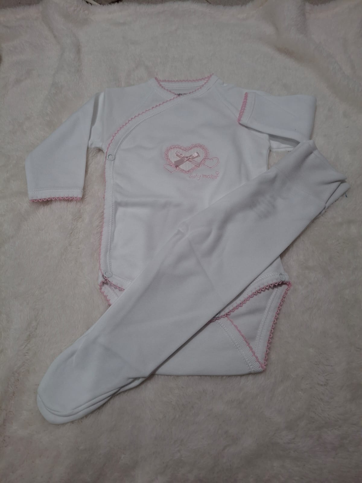 Body + calças 3 mês – Branco/Rosa – 100% Algodão