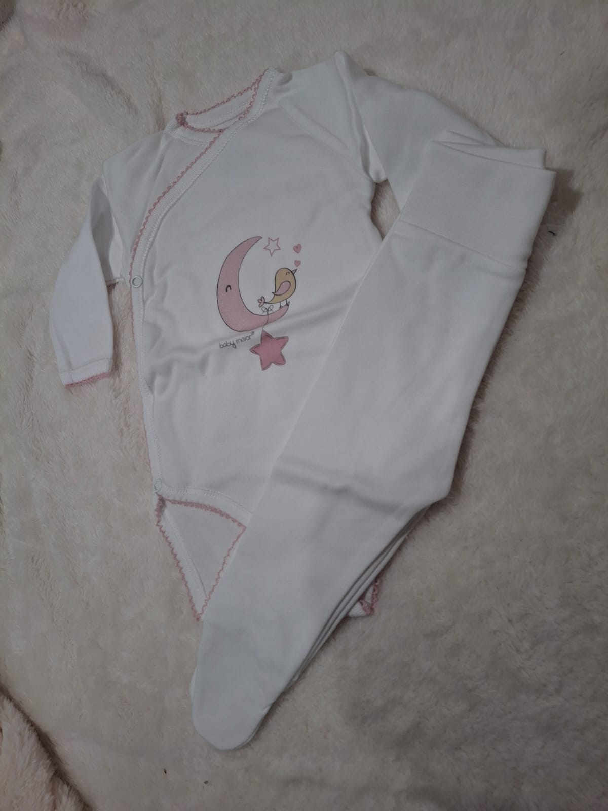 Body mais calças 3 mês Branco/Rosa – 100% Algodão