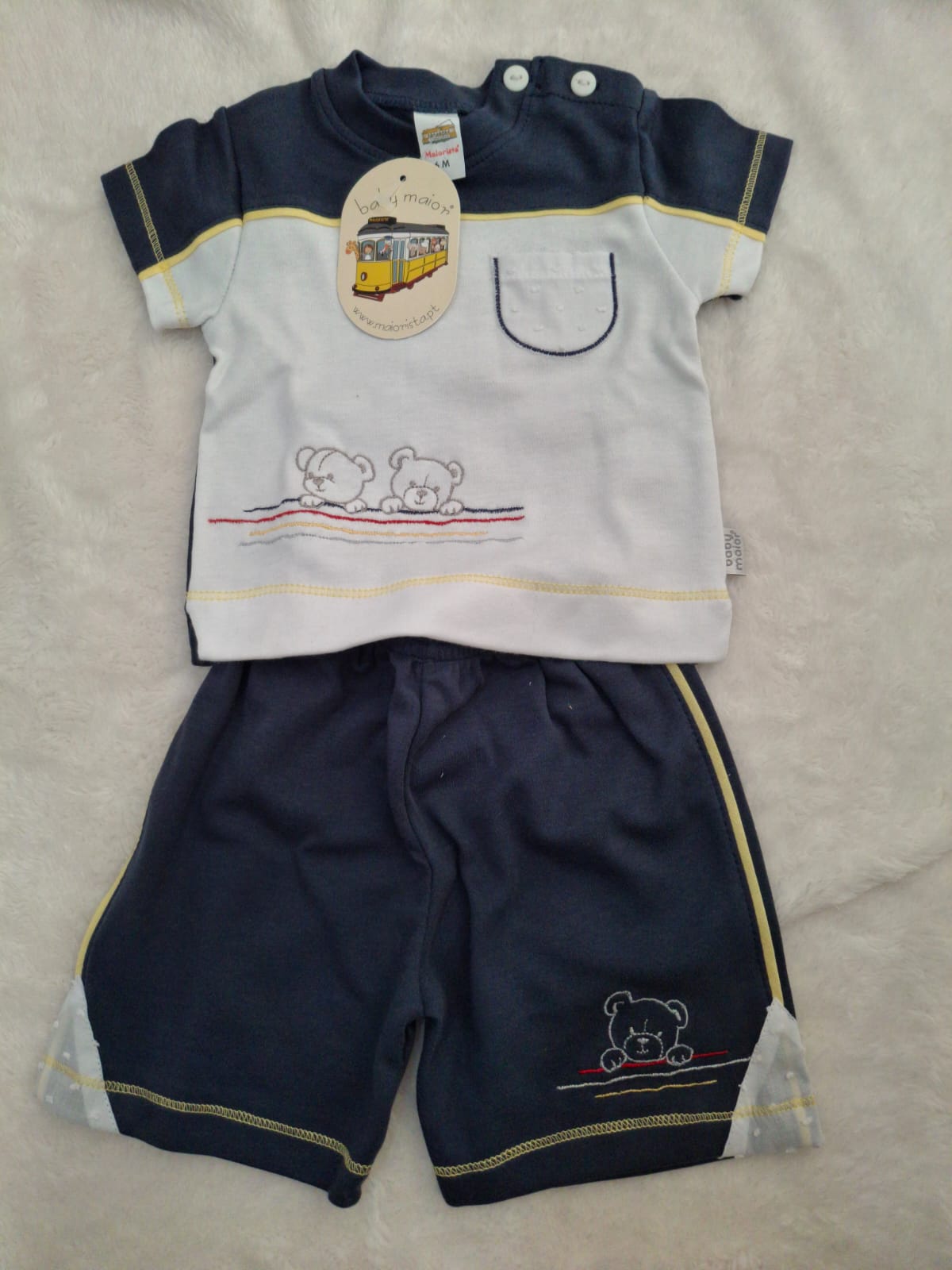 Conjunto de Calção e Blusa – 6 meses – Azul e Branco – 100% algodão