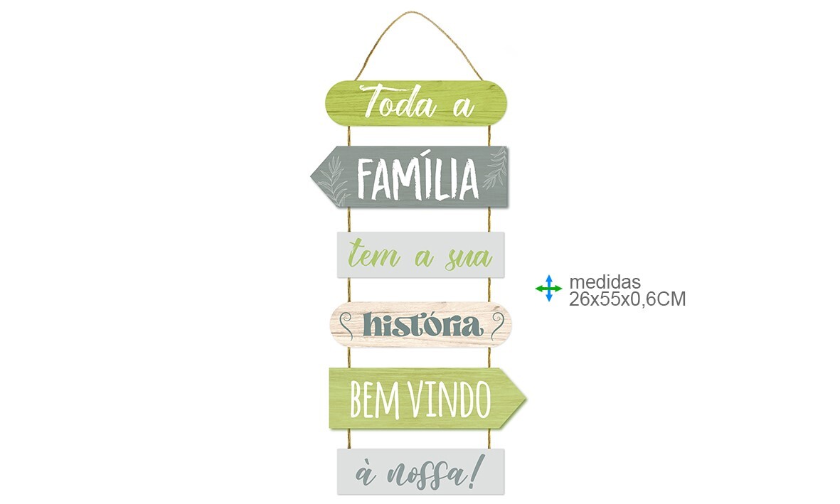 Placa de Parede com Frase: “Toda a família tem a sua historia, bem vida a nossa.”